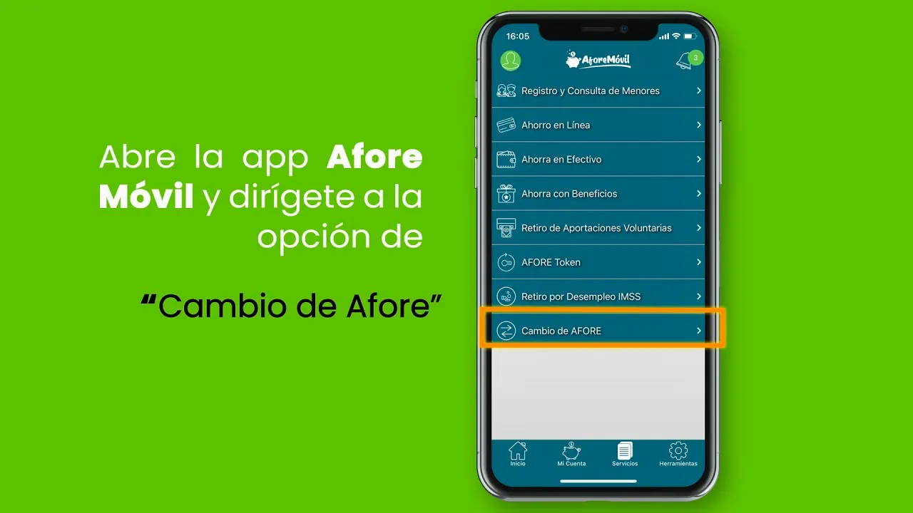 Ahora que ubicaste dónde está tu Afore, puedes elegir cambiarla a una mejor opción, que podría estar dándote más rendimientos. Esto también puedes hacerlo en línea desde la página de CONSAR o desde la app AforeMóvil. Es muy sencillo, el proceso más rápido sin duda es desde la app, ¡te tomará aproximadamente 10 minutos! Sigue estos pasos: