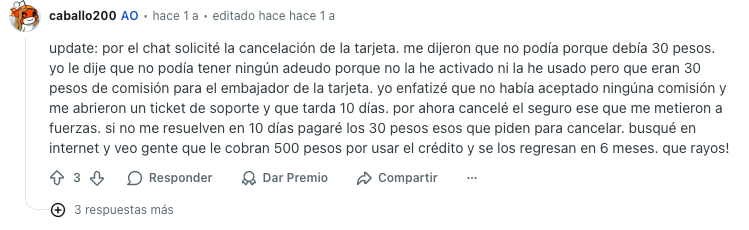 Si no te informaron de estos cargos, coméntalo a quién te atienda para que trate de omitirlos o negociarlos, sin embargo los montos que mencionaron algunos tarjetahabientes no eran altos $30 por concepto, pero es para que te tome más tiempo cancelar. Si no tienes más remedio, cúbrelo y cancela.