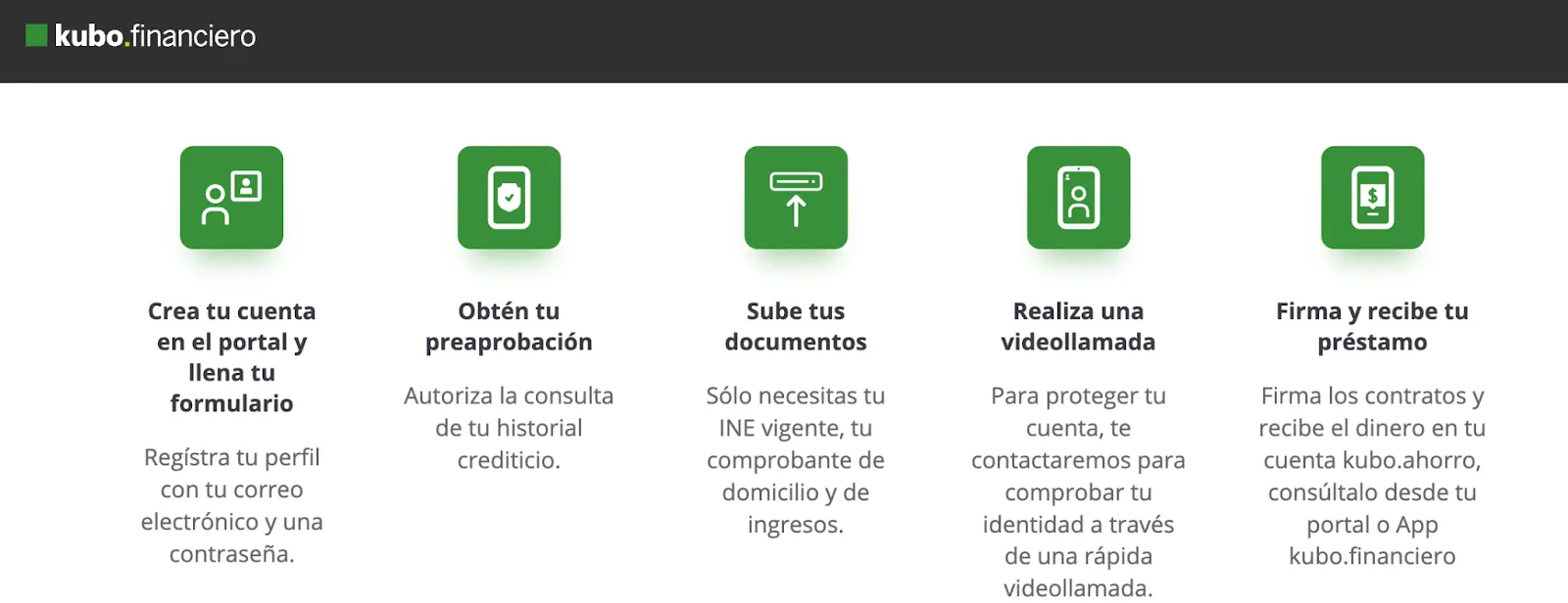 Su página web es la principal plataforma, aunque también cuentan con la app de Kubo para hacer todo desde tu celular. Dentro de la página web, al iniciar sesión podrás ver todos los detalles de tu préstamo y solicitar ayuda.