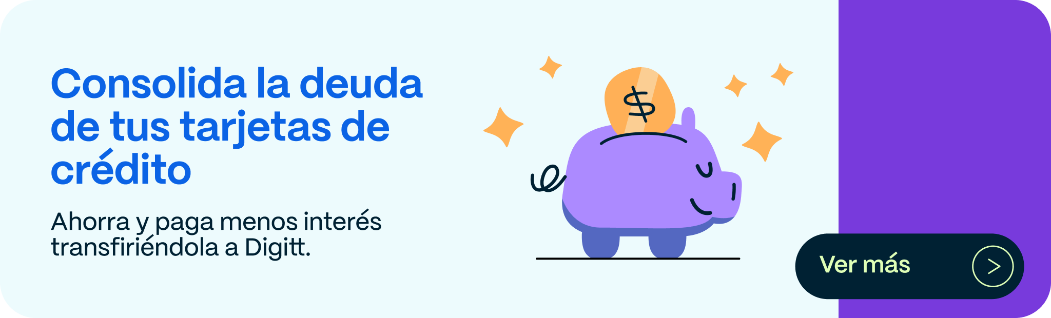 El aguinaldo es una gran oportunidad para saldar deudas, pero también para ahorrar. Sin embargo, puedes hacerlo sin sacrificar todo tu aguinaldo con un mejor plan. Por ejemplo, en Digitt podemos refinanciar tu deuda de hasta 5 tarjetas a la vez y obtener un plan de pagos más amigable y con una tasa más baja que en tus tarjetas.