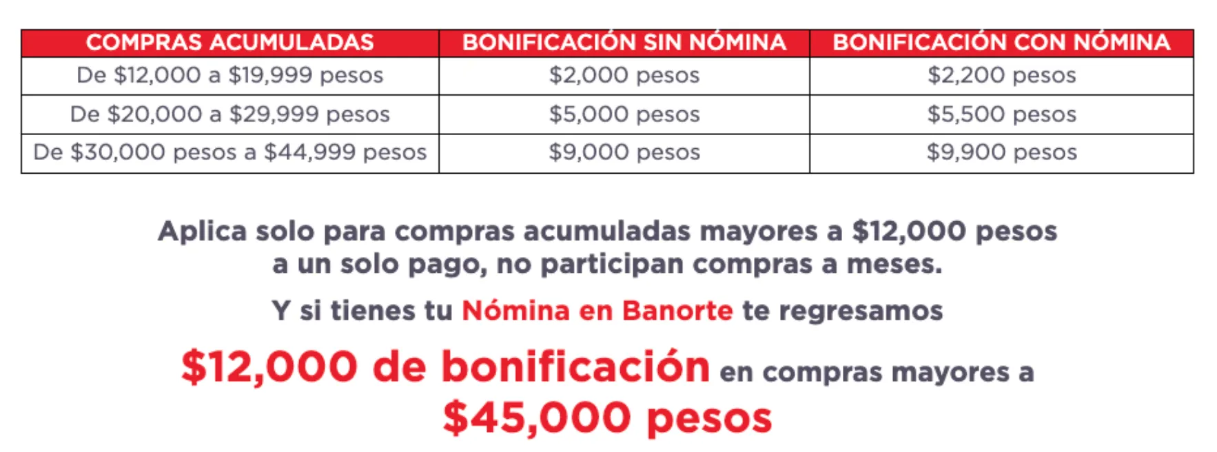20% de bonificación si compras al menos $12,500 a MSI en comercios participantes y solo si tienes tu nómina en este banco o eres cliente Premier. Si no es así, recibes 10%.