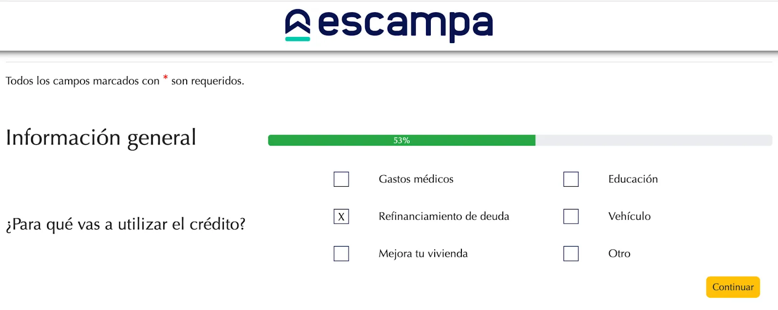 Escampa tiene sin duda una gran variedad de préstamos para diversas necesidades: desde gastos de salud, viajes, préstamos para negocio y la consolidación de deuda para tarjetas de crédito y departamentales; también tiene un muy buen rango en el monto de préstamo. Cuenta con un simulador en cada categoría, pero te da información muy general e incluso un tanto oculta respecto a sus costos, comisiones y más; esto comparado con otros competidores.