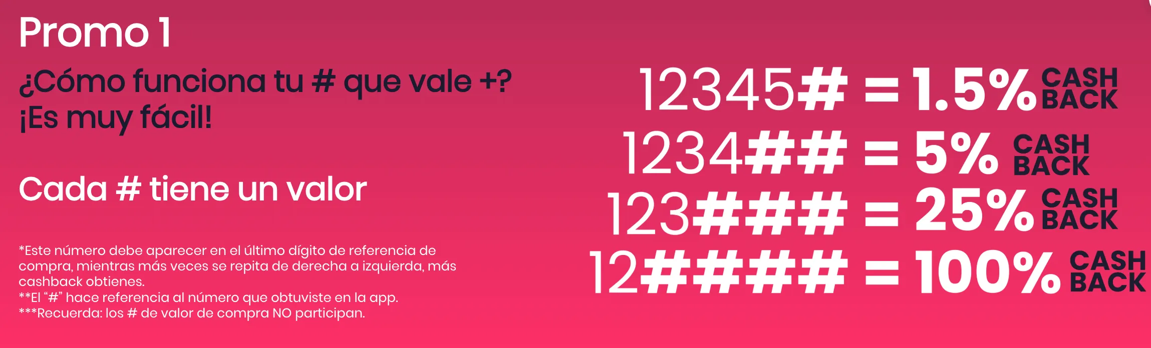 El cashback se asigna automáticamente y dependiendo de cuántas veces se repita el dígito que te asignaron a partir del final del número de referencia.