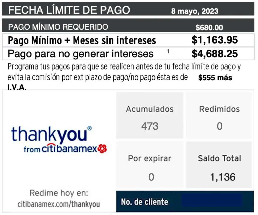 El balance de tus ThankYou Points se incluye en tu estado de cuenta justo debajo de tu saldo a pagar, además cada mes recibirás el reporte de tus puntos por correo electrónico. Pero también puedes consultarlo en el momento que quieras desde tu app, en tu banco en línea o llamando al 55 1000 0432 de lunes a viernes en horarios de 8 a.m. a 8 p.m.