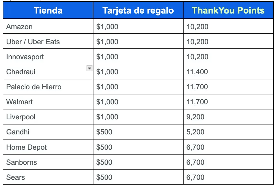 Si te preguntas cuánto valen los ThankYou Points en Liverpool o tu tienda favorita, te dejamos esta tabla con los comercios donde podrías canjear tus puntos por una tarjeta de regalo. La equivalencia es distinta en cada uno.
